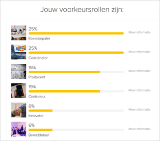 De actie heeft goed aan mijn verwachtingen voldaan, de test kwam met goede vragen en leidden tot een duidelijk beeld van de leiderschapsstijl die ik nu gebruik. Uit de test kwam dat ik vooral een koersbepaler ben in combinatie met de coördinerende rol. Dit betekent dat ik een stabiele leider ben die voornamelijk is gefocust op: Doelstellingen, verwachtingen en het plannen van de doelen die behaald worden. Ook handhaaf ik een georganiseerde structuur en ben ik scherp op afspraken nakomen. Hierin zie ik mezelf heel erg terug, deze manier van leiding geven heeft vaak mijn voorkeur.