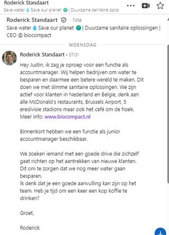 Actie 1 - LinkedIn bijdrage (Bewustzijn creëren dat ik een sales baan zoek en bijna ben afgestudeerd)